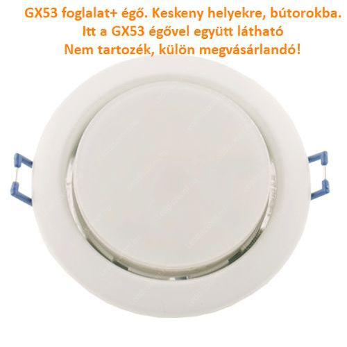 Foglalat a GX53 típusú led lámpákhoz, matt króm. GX53 led. Amikor lapos helyeken kell megoldani a világítást és nincs 7,5 centi mély hely akkor ideális és gyors megoldás! Folyosókra- lépcsőházakba-szekrényekbe, konyhaszekrényekbe ideális a GX53 foglalatú led. A következő ledeket ajánljuk hozzá: LLGX53AP5WK2700, LLGX53AP7WK2700.