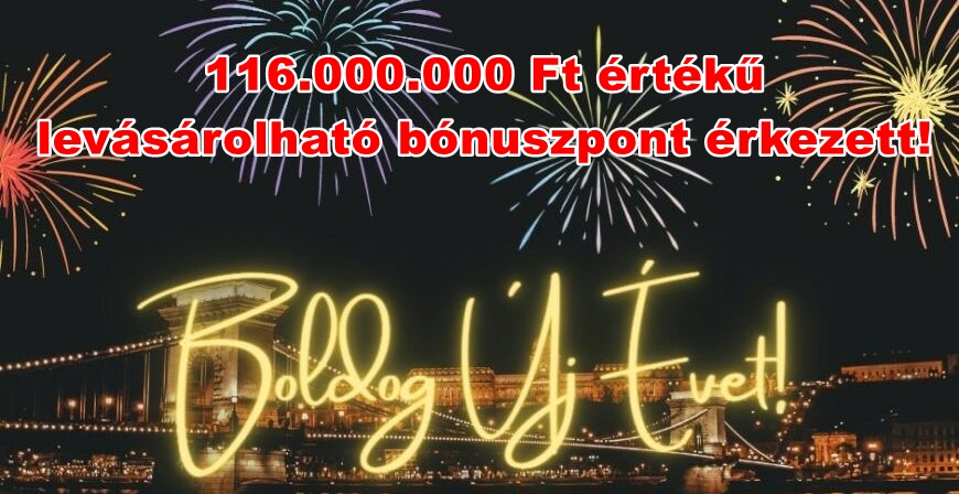 Ajándék 3.000 Ft értékű bónuszpont, mindenkinek, aki olvasssa a hírlevelet! 52.000 db felhasználónak 156.000.000 Ft értékű bónuszpont jóváírva!