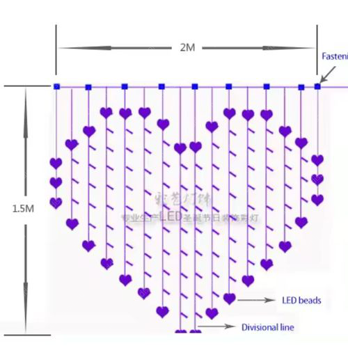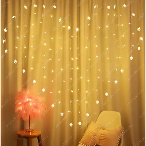 Valentin napra, esküvőre party fény, szív formájú kül-és beltéri /IP44/ függöny, 32db kis szív, 122db meleg fehér Leddel, villogtatható, 8 funkciós vezérlővel, átlátszó kábellel, fogyasztása 3,84W, termék mérete: 200x160 cm, vezeték hossza: 3 m. A ledek nem cserélhetőek! USB csatlakozós, 5V. Bármelyik régi USB / telefon/töltővel működik! Kapható nálunk is USB töltő: LLTUSB1A, LLTUSB4X5V3A. Life Light Led 2 év garancia!