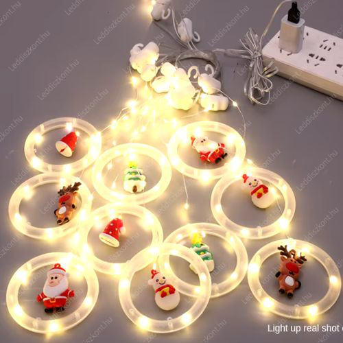 Life Light Led USB csatlakozós karácsonyi és party fény, beltéri /IP20/ függöny, 8 funkciós vezérlővel, 10 db köralakú karácsonyi figurával, 110 db meleg fehér Leddel, automata időzítős adapterrel, 6H működés, 18H kikapcsolás, átlátszó kábellel, fogyasztása 1,1W, termék mérete 3x0,5 m, vezeték hossza 2 m. A ledek nem cserélhetőek! Bármelyik USB-s karácsonyi termékünk távirányítójával működik/ nem tartozék! /. Kapható nálunk is USB töltő: LLTUSB1A, LLTUSB4X5V3A. Life Light Led 2 év garancia!