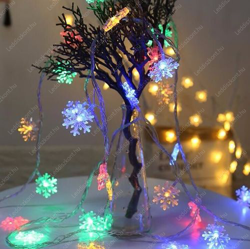 Karácsonyi Led füzér, 100db hópihe, multi color/színes/ Leddel, villogtatható, 8 funkciós vezérlővel, átlátszó kábellel, fogyasztása 3W, termék mérete: 10 méter, vezeték hossza: 3 m, kül-és beltéri /IP44/ függöny. A ledek nem cserélhetőek! USB csatlakozós, 5V! Bármelyik régi USB / telefon/töltővel működik! Kapható nálunk is USB töltő: LLTUSB1A, LLTUSB4X5V3A. Life Light Led 2 év garancia!