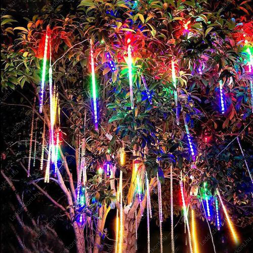 Karácsonyi kül- és beltéri /IP44/ 10x50 cm csepegő jégcsap ablakba, soronként külön csepeg, toldható! Az időzítő bekapcsolása esetén 6 órát világít, utána 18 órát nem! 10 x 4 db multi color Leddel, 50 cm jégcsap, fehér kábellel, 230V adapterrel, a ledek 7 Voltosak, fogyasztása 3,6 W, termék hossza: 4 m, a vezeték hossza: 5 m. A termék toldható, maximum 3 db-ig. A ledek nem cserélhetőek! Ledes jégcsap füzér. Life Light Led 2 év garancia!