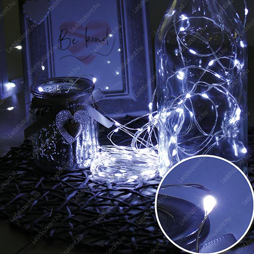 Mikro- Ledes Nano fényfüzér, 100 db diszkrét, kis méretű, hideg fehér Leddel, 6/18H időzítővel. Extra vékony, szinte láthatatlan réz színű vezeték, 100 Led, IP44 vízálló. 30 000 óra. Hossz: 10 m, tápvezeték 2 m. Használható kül- és beltéren, a ledek 4,5 Voltosak, fogyasztás 3,6 W. Auto on/off. Az időzítő bekapcsolása esetén 6 órát világít, utána 18 órát nem! Kiválóan alkalmas esküvőkre, bulikra, teraszokra is! Life Light Led 2 év garancia!