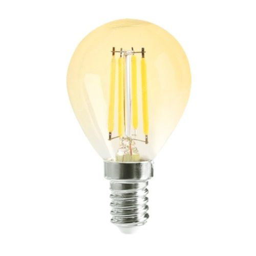 Leddiszkont - Led Filament körte égő 6W, Borostyán bura, 45mm, 500 Lumen, 50W izzó helyett. E14, 2000K, extra meleg fehér, nem vibrál! Life Light Led 2 év garancia!