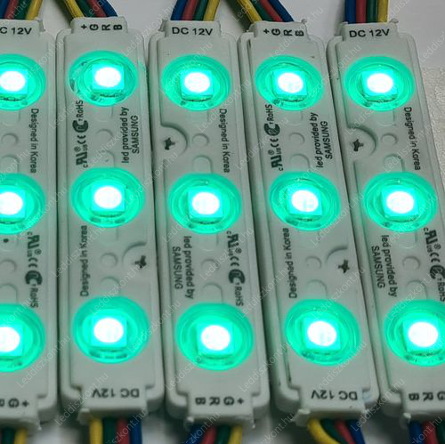 Led modul RGB, 5050 méretű 3 db smd Led modul. A Led modul kiválóan alkalmas dekorációs célokra, világító táblák, betűk, ábrák kirakására, rejtett világításhoz! Magyarországon a legolcsóbb 2 év garanciás Led modul, csak a leddiszkontban! IP65 vízálló. Life Light Led 2 év garancia!