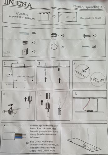 Led panel függesztő, 1 méter hosszú, 6db/csomag, Led panelhoz és Led Tri-proof vízmentes por és páramentes lámpához. Bármilyen Led panelhoz jó!