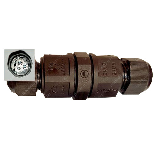 IP67 kötődoboz henger, 450V/24A, 3*0,5mm-2,0mm vezetékhez! Fekete. SODROTT VEZETÉKHEZ NEM HASZNÁLHATÓ! A Led reflektorok elengedhetetlen kelléke! Végre nem kell szétszedni a lámpát, a kilógó vezeték így könnyen toldható!