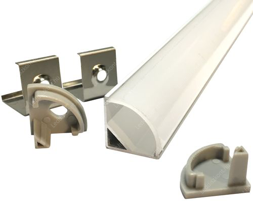 Leddiszkont - Alumínium profil Led szalaghoz sarok 1 méter sín+ opál búra+2 db rögzítő+2 db vég. 8-12 mm széles Led szalaghoz.