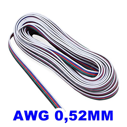 5 eres vezeték 12V, RGB led szalaghoz. Fekete ér a négy szín (RGBW) AWG20 0,52 mm2 keresztmetszetű. RGBW. Life Light led 1 év garancia!