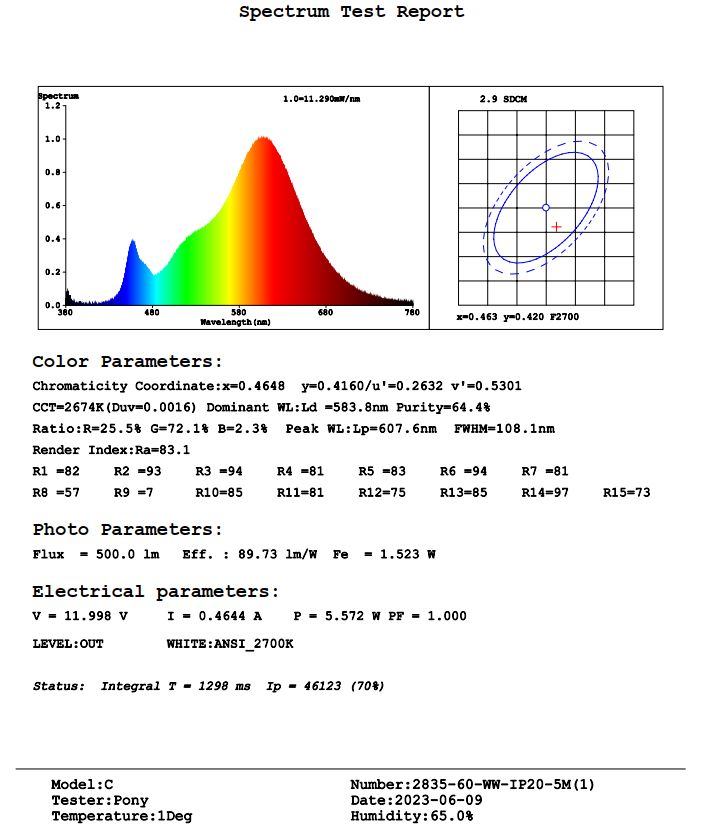 A legerősebb 2835 chippel szerelt/7-8 lumen/chip/ EXTRA fényű, 2700 kelvin, meleg fényű led szalag, fehér alapon, 60 Led/ méter, 8 mm széles. Ez a típusú Led szalag flexibilis, 3 Ledenként darabolható, sokoldalú felhasználási területtel! A Led szalag kiválóan alkalmas rejtett világításhoz, reklámvilágításhoz, konyhapultok, képek, üveg vitrinek, kirakatok megvilágításához! Öntapadós! A tartós /több éves/ tapadás érdekében ajánlott plusz ragasztóval megerősíteni! A Life Light Led szalagok tulajdonságai: dupla fényerő, szűk kelvin 2700-2900, 4000-4200, 6000-6200, egyszínű chipek 5 méteres tekercsen belül, fehér nyákra vannak szerelve és minden 5 méteres tekercsen Jack dugó aljzat található! Más forgalmazóknál, mivel nagy a szórás a kelvinnél, akár 1 méteren belül is színeltérés lehet! Csak a leddiszkontban: A lumen vizsgálati jelentés megtalálható a termék alatt, a Fény- és teljesítménymérési jegyzőkönyv, Letöltés menüpontban! Life Light Led 2 év garancia!