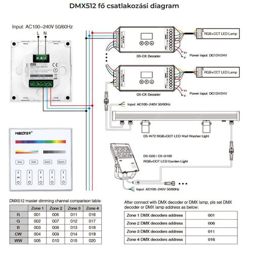 | Kategória | Led szalag vezérlők, Led szalag vezérlők DMX, Mi-Light vezérlő, Led szalag vezérlők Wifi-Bluetooth, , Led szalag RGB, Led szalag RGBCCT |