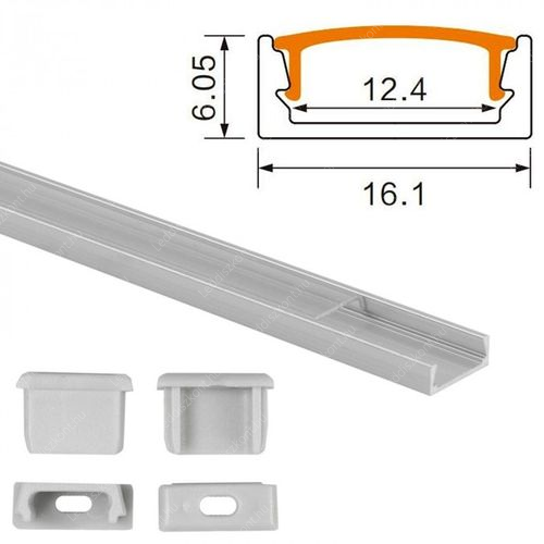 Alusín Led profil szett, ragasztható vagy csavarozható! 8-12 mm Led szalaghoz. 2 m fehér sín+ opál búra +4 db vég.